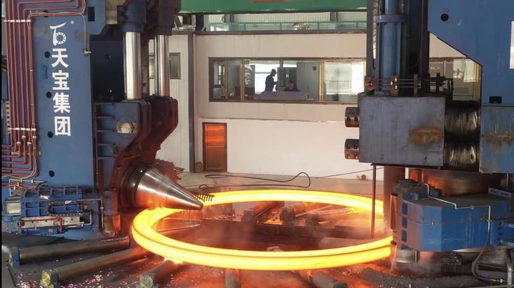 这是天宝科工股份有限公司大型环锻法兰件制造场景。新华社记者张哲 摄